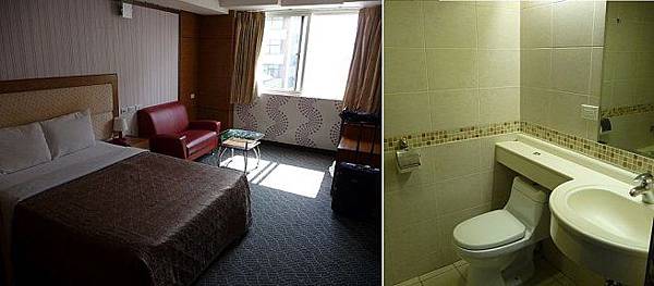 全家歡旅店,大廈外貌非常殘舊,旅館位於4樓,3樓是另一間 璽愛旅館 ,全家歡比較像時鐘酒店,還好房間不細,比 City Inn 還要大,窗大光線充足,廁所整潔,大堂還有個電腦上網及電子磅,不怕行李超重 ,台幣1500/晚真的很平宜,唯一要投訴的是床褥太太太軟。