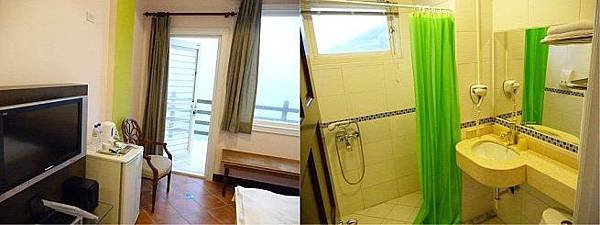 我們訂了頂樓的雙人房,雖然房間不是很大,但設施一應俱全,電器還是 Panasonic 名牌貨,重點是它的露台,可以無阻擋看太平洋海