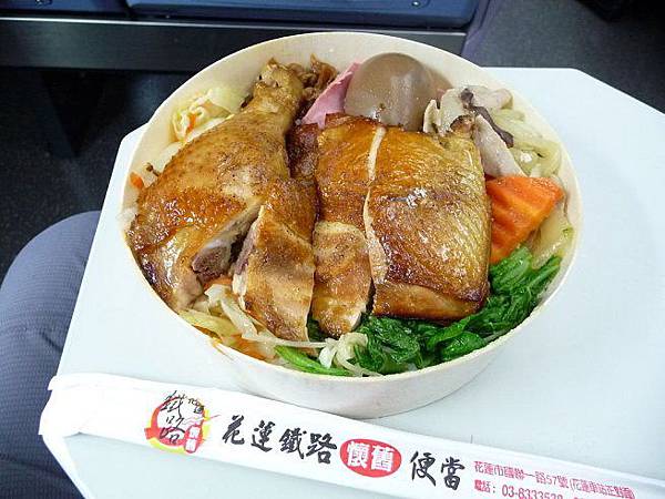 鐵路便當在火車上食,全場最貴的煙燻雞髀($95),原來非常豐富. 大大隻雞髀,另加8-9樣配菜,米飯也很好吃,可以一試