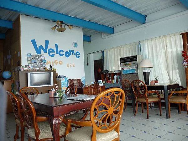 這是check-in櫃台及早餐地方,早餐超豐富,麵包及咖啡還可以re-fill